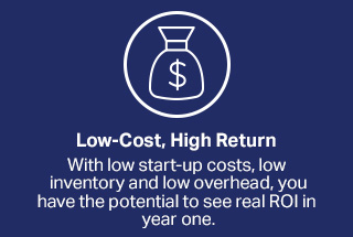 With low start-up costs, low inventory, and low overhead, you have the potential to see real ROI in year one.